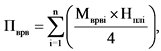 Сумма платежа за выбросы загрязняющих веществ, определенная суммарно по всем загрязняющим веществам исходя из значений объема или массы выбросов загрязняющих веществ, равных значениям временно разрешенных выбросов на текущий отчетный период, умноженных на соответствующие ставки платы (Пврв), определяется по формуле: