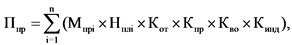 Сумма платежа за выбросы загрязняющих веществ, определенная суммарно по всем загрязняющим веществам исходя из значений объема или массы выбросов загрязняющих веществ, равных значениям нормативов допустимых выбросов на текущий отчетный период, умноженных на соответствующие ставки платы (Пндв), определяется по формуле: